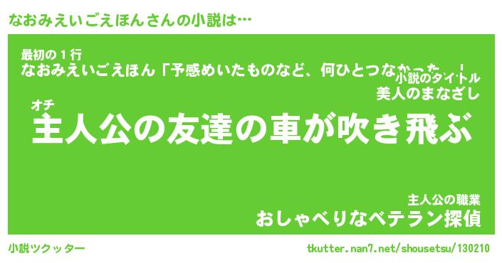 | 男性向けラノベタイトル風あだ名 | 『ナオミエイゴエホンアートオンライン』 |