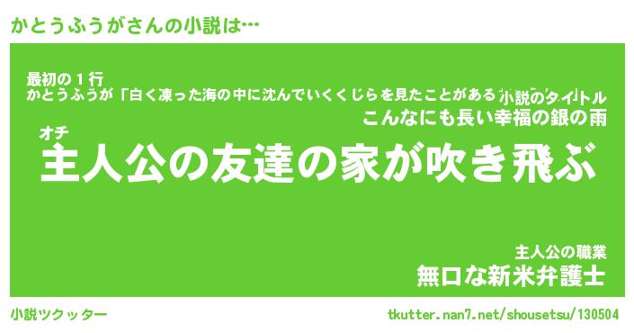| 男性向けラノベタイトル風あだ名 | 『かとうふうがの憂鬱』 |