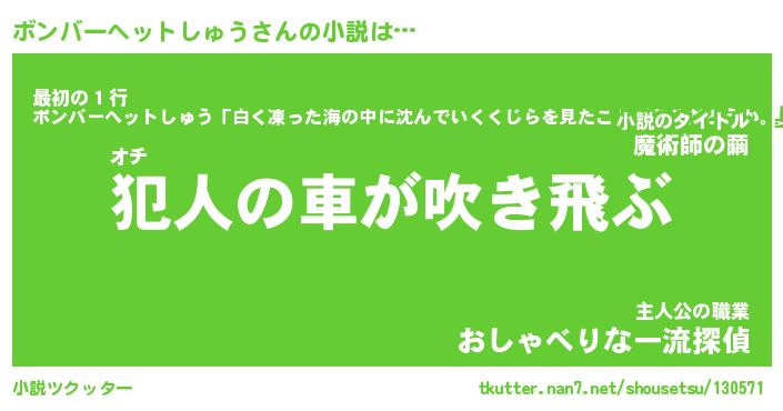 | 男性向けラノベタイトル風あだ名 | 『ボンバーヘットシュウアートオンライン』 |