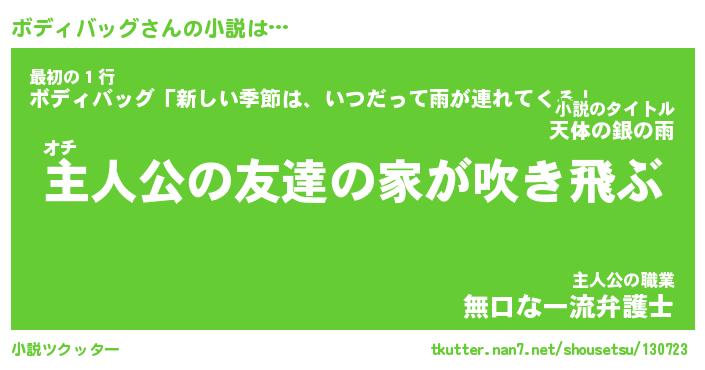 | 魚たちの銀の雨WW …「ケモノ」 | 10月27日 05:47 |