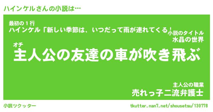 | 男性向けラノベタイトル風あだ名 | 『ハインケルアートオンライン』 |