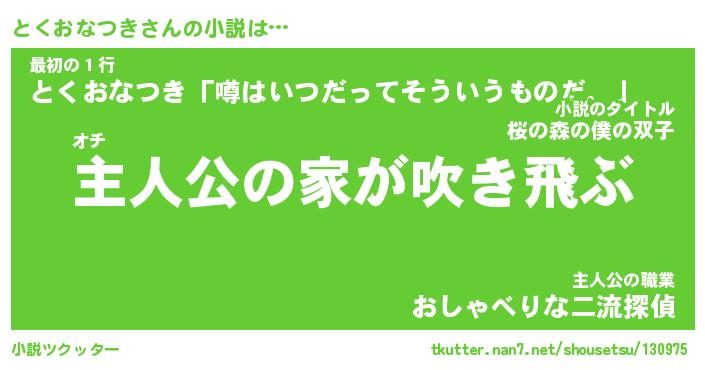 | 男性向けラノベタイトル風あだ名 | 『とくおなつきの憂鬱』 |