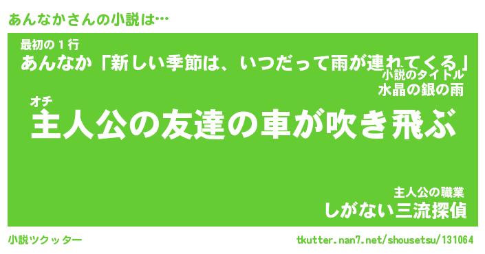 | 魚たちの銀の雨WW …「ケモノ」 | 10月27日 05:47 |