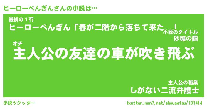 | ツイッター | ヒーローぺんぎんさんのツイッターID『katatsumuri_nyan』 |