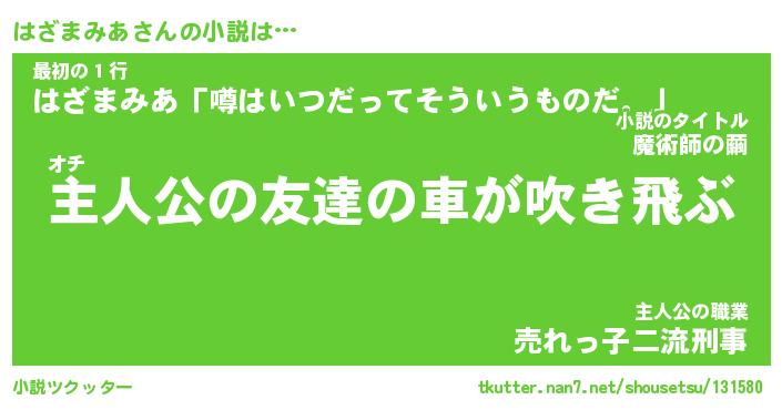 | 胡散臭い通販商品みたいなあだ名 | 『モテモテ間違いなし霊験あらたかなお札…その名も「はざまみあ」』 |