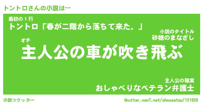 | 男性向けラノベタイトル風あだ名 | 『トントロの憂鬱』 |