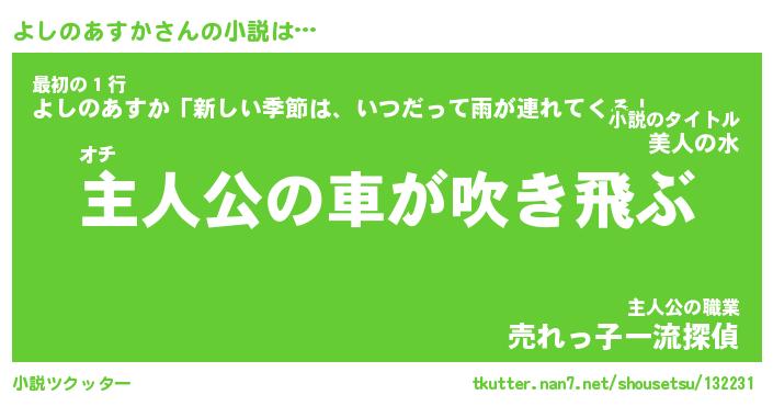 | 男性向けラノベタイトル風あだ名 | 『よしのあすかの憂鬱』 |