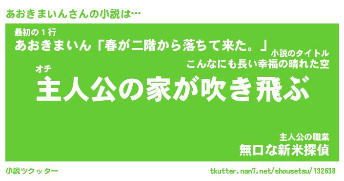 | 男性向けラノベタイトル風あだ名 | 『あおきまいんの憂鬱』 |