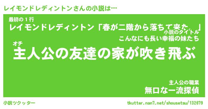 | 男性向けラノベタイトル風あだ名 | 『レイモンドレディントンの憂鬱』 |