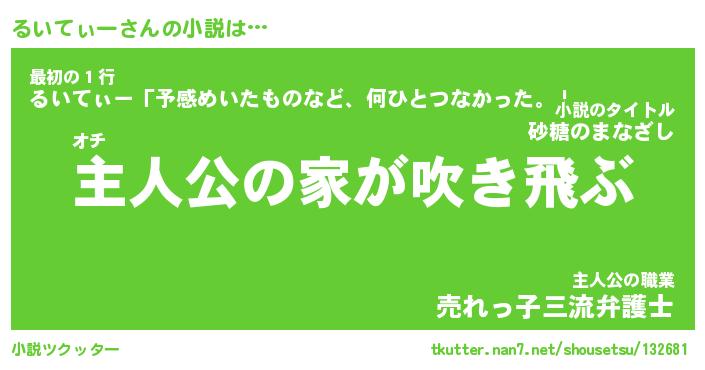 | 男性向けラノベタイトル風あだ名 | 『るいてぃーの憂鬱』 |