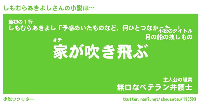 | 男性向けラノベタイトル風あだ名 | 『しもむらあきよしの憂鬱』 |