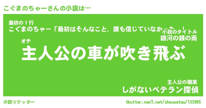 | 魚たちの銀の雨WW …「ケモノ」 | 10月27日 05:47 |