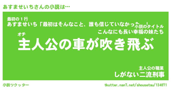 | 男性向けラノベタイトル風あだ名 | 『あすませいちの憂鬱』 |