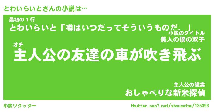 | 胡散臭い通販商品みたいなあだ名 | 『モテモテ間違いなしブレスレット…その名も「とわいらいと」』 |
