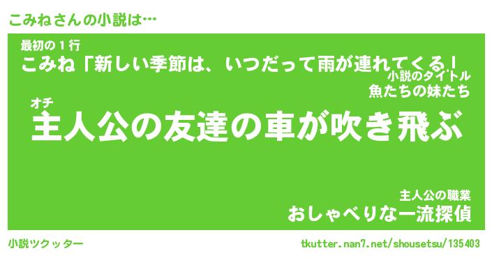 | 自動車の名前っぽいあだ名 | 『コミティマ』『コクア』『ヴィッコ』 |