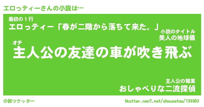 | 胡散臭い通販商品みたいなあだ名 | 『億万長者になれる水晶球…その名も「エロっティー」』 |