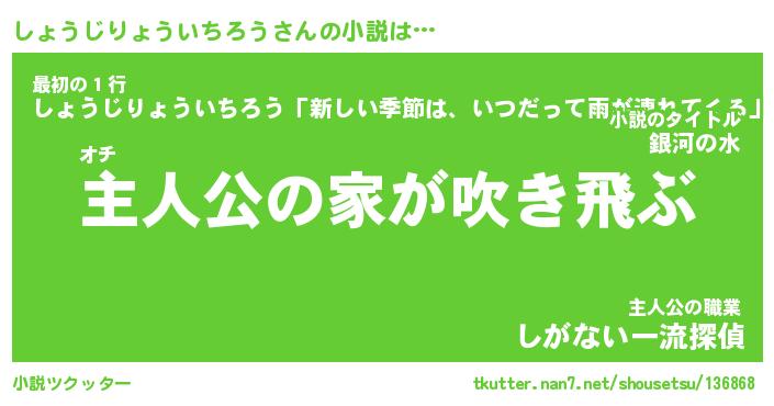 | 女子向けラノベタイトル風あだ名 | 『(仮)しょうじりょういちろうのやんごとなき事情』 |