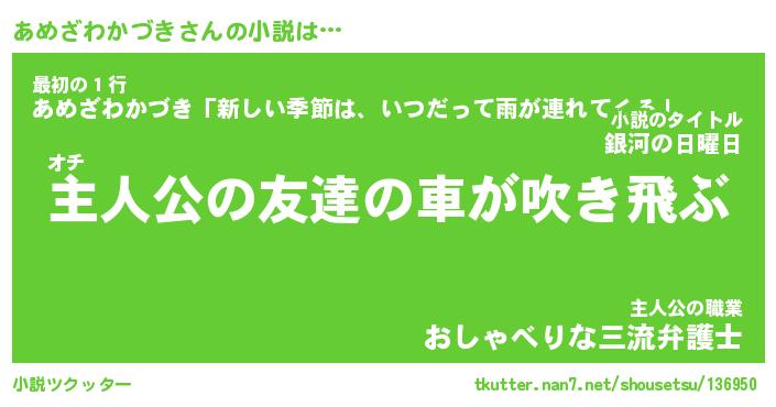 | 胡散臭い通販商品みたいなあだ名 | 『モテモテ間違いなしブレスレット…その名も「あめざわかづき」』 |