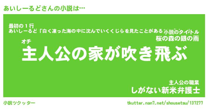 | 魚たちの銀の雨WW …「ケモノ」 | 10月27日 05:47 |