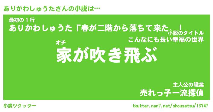 | 胡散臭い通販商品みたいなあだ名 | 『必ず成功するブレスレット…その名も「ありかわしゅうた」』 |