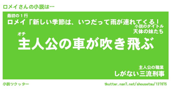 | 魚たちの銀の雨WW …「ケモノ」 | 10月27日 05:47 |