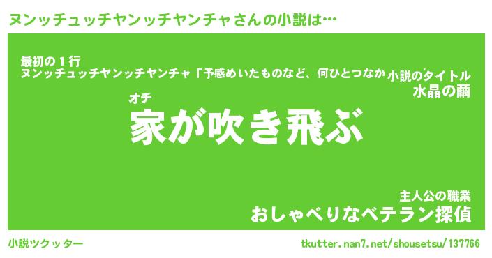 | 男性向けラノベタイトル風あだ名 | 『ヌンッチュッチヤンッチヤンチャの憂鬱』 |