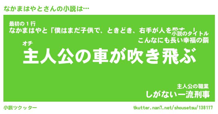| 男性向けラノベタイトル風あだ名 | 『なかまはやとの憂鬱』 |