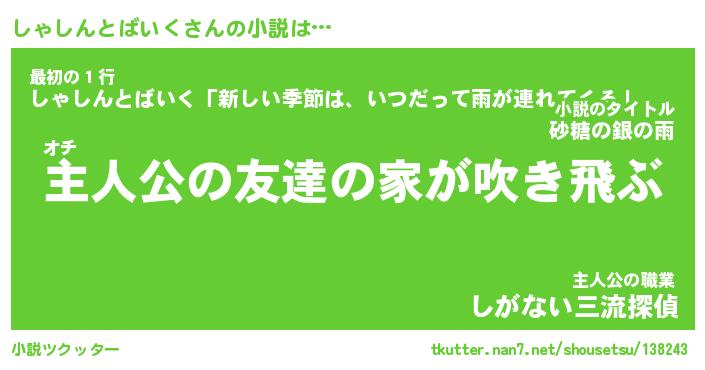 | 胡散臭い通販商品みたいなあだ名 | 『モテモテ間違いなしブレスレット…その名も「しゃしんとばいく」』 |