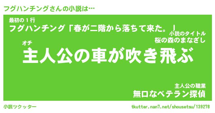 | 男性向けラノベタイトル風あだ名 | 『フグハンチングの憂鬱』 |