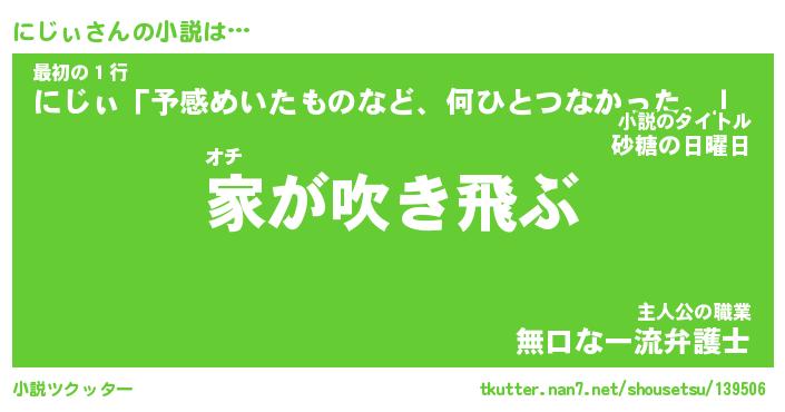 | 男性向けラノベタイトル風あだ名 | 『にじぃの憂鬱』 |