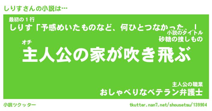 | 男性向けラノベタイトル風あだ名 | 『しりすの憂鬱』 |