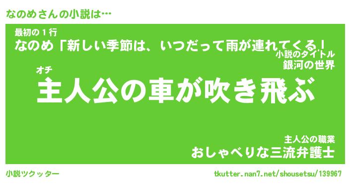 | 肩書あだ名 | 『なのめ御曹司』『なのめ総理大臣』 |