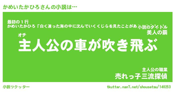 | 胡散臭い通販商品みたいなあだ名 | 『必ず成功するブレスレット…その名も「かめいたかひろ」』 |
