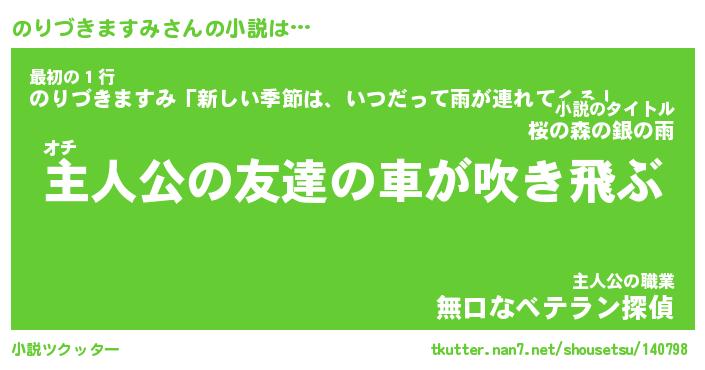 | 自動車の名前っぽいあだ名 | 『ノリティマ』『ノクア』『ノント』 |