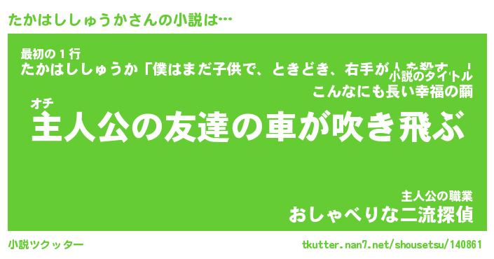 | 男性向けラノベタイトル風あだ名 | 『タカハシシュウカアートオンライン』 |