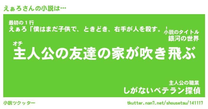 | 魚たちの銀の雨WW …「ケモノ」 | 10月27日 05:47 |