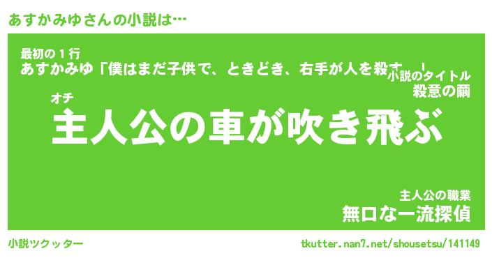 | 男性向けラノベタイトル風あだ名 | 『あすかみゆの憂鬱』 |