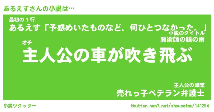 | 魚たちの銀の雨WW …「ケモノ」 | 10月27日 05:47 |