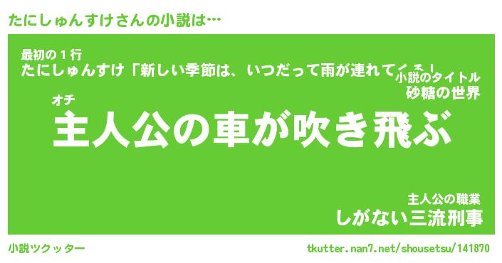 | 男性向けラノベタイトル風あだ名 | 『たにしゅんすけの憂鬱』 |