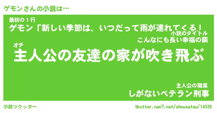 | 男性向けラノベタイトル風あだ名 | 『ゲモンの憂鬱』 |