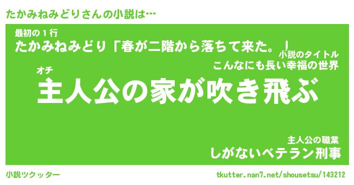 | 男性向けラノベタイトル風あだ名 | 『たかみねみどりの憂鬱』 |