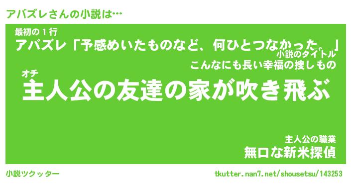 | 男性向けラノベタイトル風あだ名 | 『アバズレの憂鬱』 |