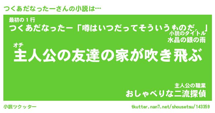 | 魚たちの銀の雨WW …「ケモノ」 | 10月27日 05:47 |