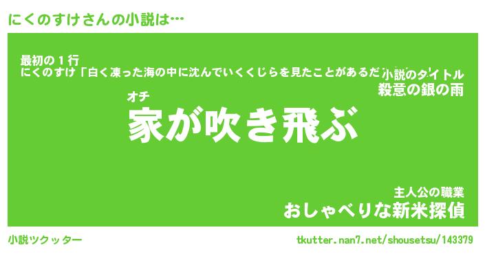 | 男性向けラノベタイトル風あだ名 | 『にくのすけの憂鬱』 |