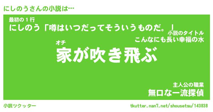 | 魚たちの銀の雨WW …「ケモノ」 | 10月27日 05:47 |