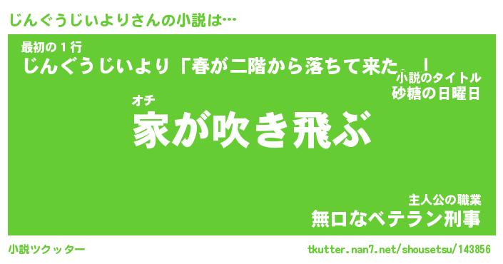 | 男性向けラノベタイトル風あだ名 | 『じんぐうじいよりの憂鬱』 |