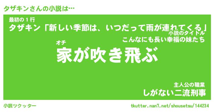 | 男性向けラノベタイトル風あだ名 | 『タザキンの憂鬱』 |