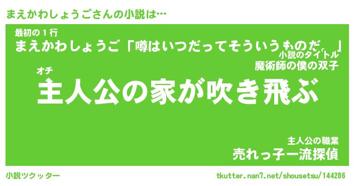 | 男性向けラノベタイトル風あだ名 | 『まえかわしょうごの憂鬱』 |
