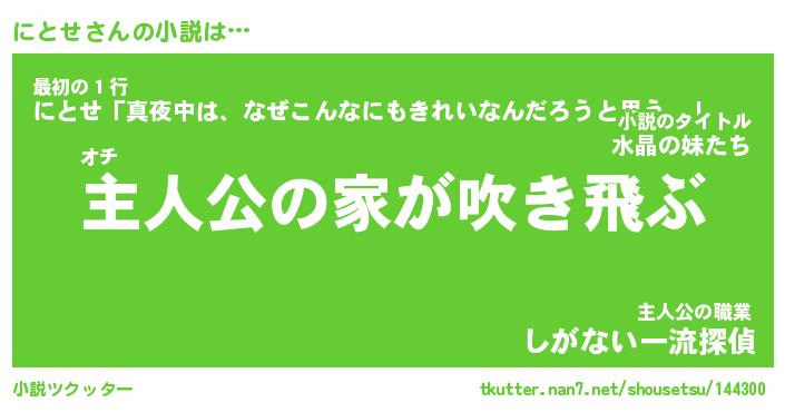| 胡散臭い通販商品みたいなあだ名 | 『必ず成功するブレスレット…その名も「にとせ」』 |