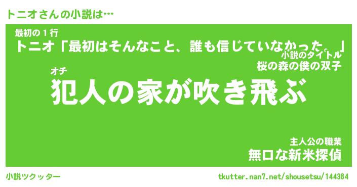| 男性向けラノベタイトル風あだ名 | 『トニオアートオンライン』 |